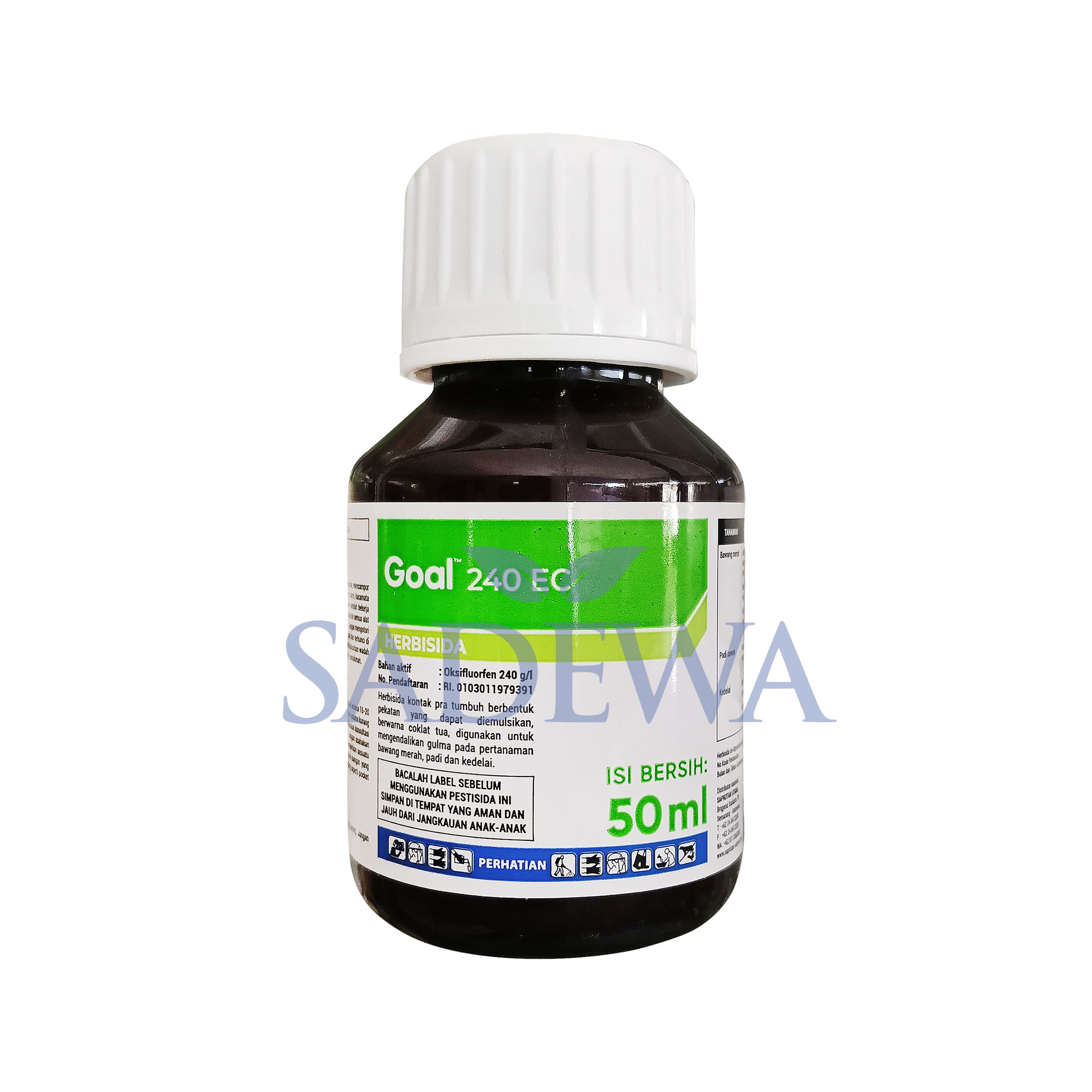GOALâ„¢ 240 EC adalah sebuah herbisida kontak pra tumbuh berbentuk pekatan yang dapat diemulsikan berwarna coklat tua, digunakan untuk mengendalikan gulma di pertanaman bawang merah, kakao, kapas, karet, kedelai, kelapa sawit, padi gogo, padi sawah, tebu, teh, ubi kayu.